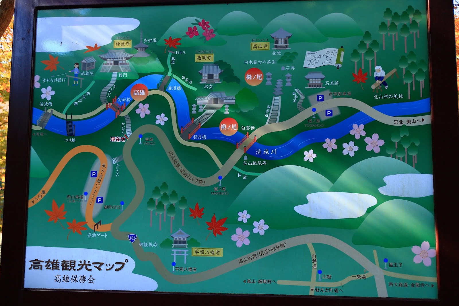 我們要從左邊偏中央的現在地走到左上的神護寺..
